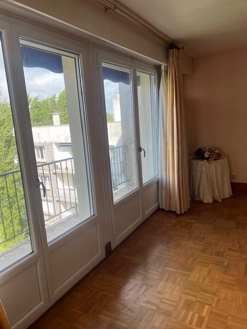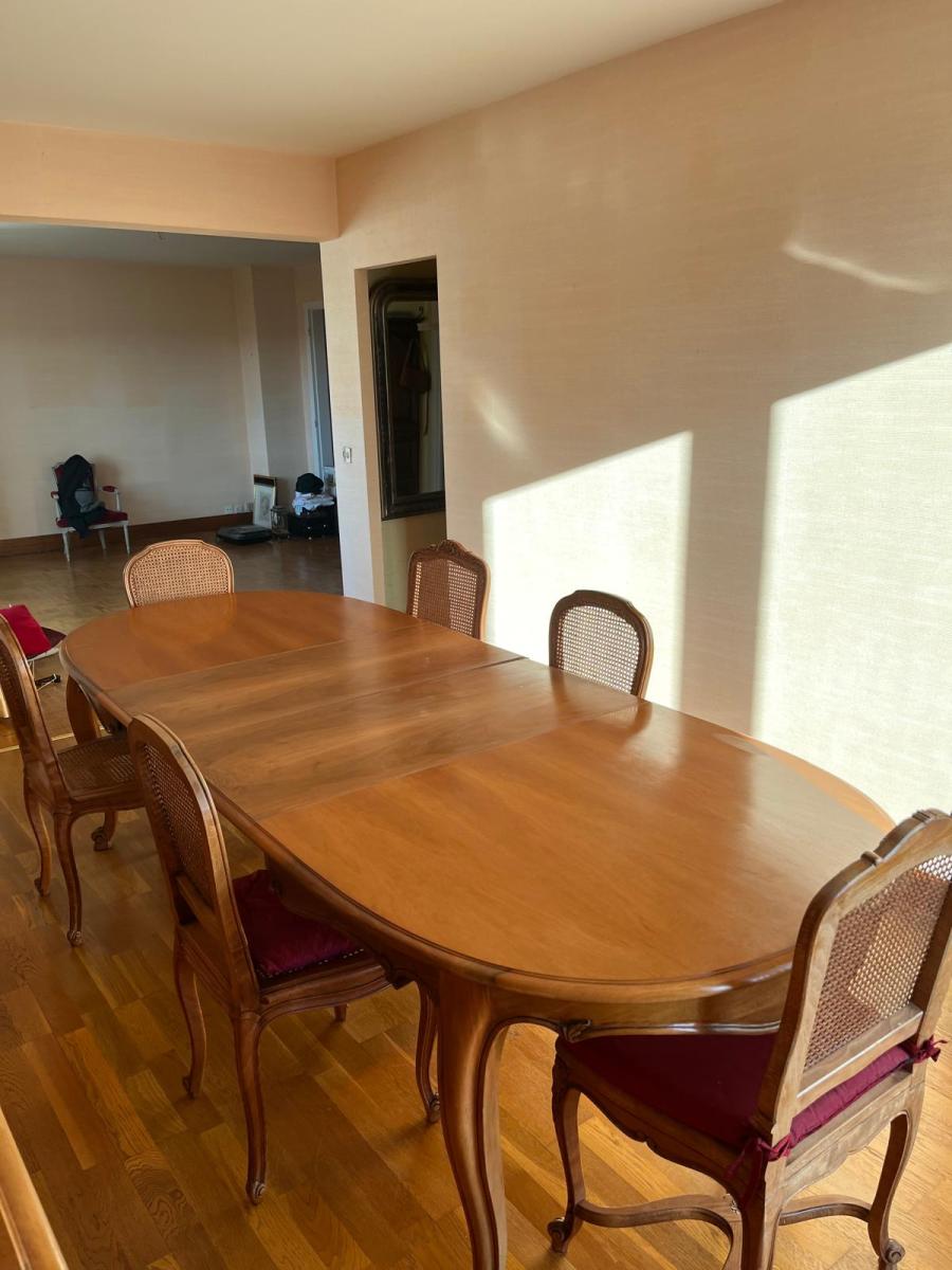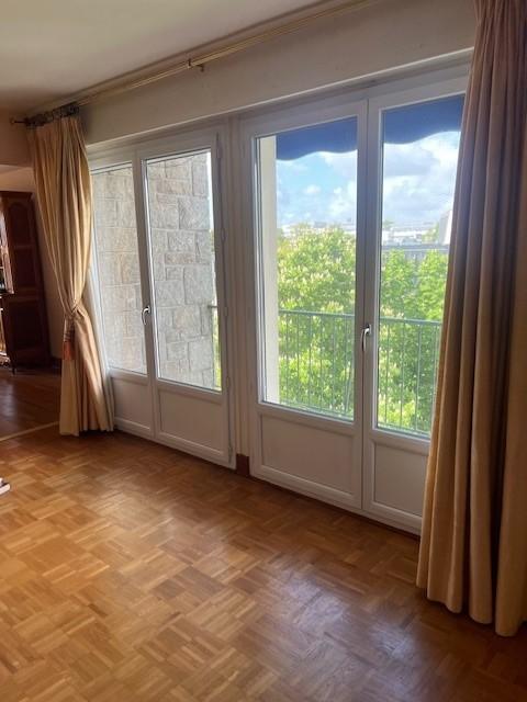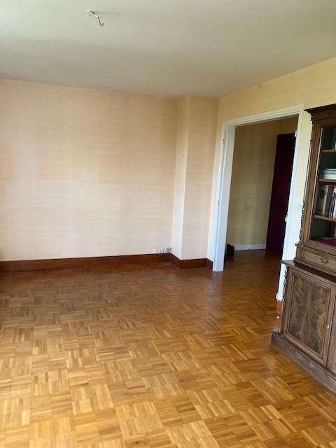 Au 6ème étage, vue dégagée, appartement de 86m2, exposé est-ouest : entrée avec placard, salle à manger et salon sur parquet, cuisine exposée est, buanderie, deux chambres avec balcon, salle d'eau, wc.