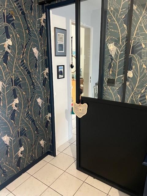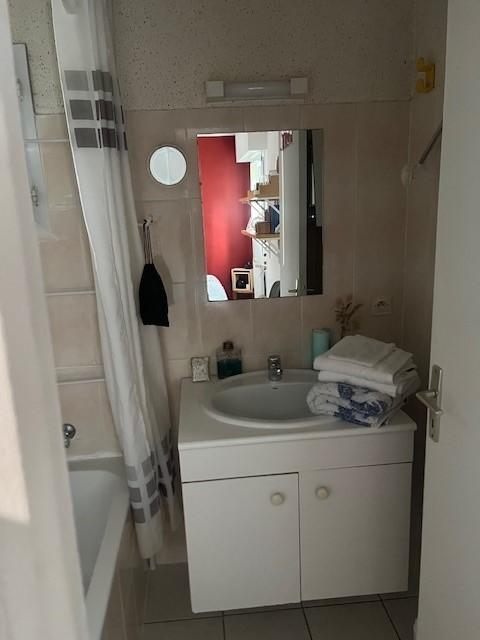 hall d'entrée, séjour salon donnant sur une terrasse, cuisine équipée et aménagée, une chambre avec salle de bains privative, sanitaires.