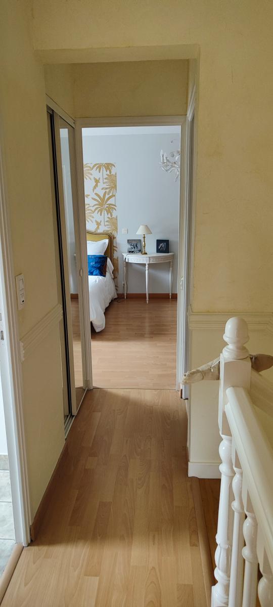 A l'étage : dégagement avec placard, trois chambres, bel espace détente ou bureau, salle de bains, wc.